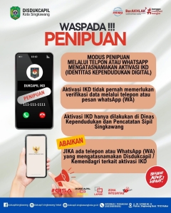 Siapa yang ngaku-ngaku jadi DUKCAPIL KEMENDAGRI? Nah jangan sampai Sobat Dukcapil #wargakotasingkawang kena sasaran penipuan nomor tidak bertanggung jawab ini. Mengatasnamakan Aktifasi IKD (aktivasi IKD tidak pernah memerlukan verifikasi data melalui telepon atau pesan WhatsApp (WA)