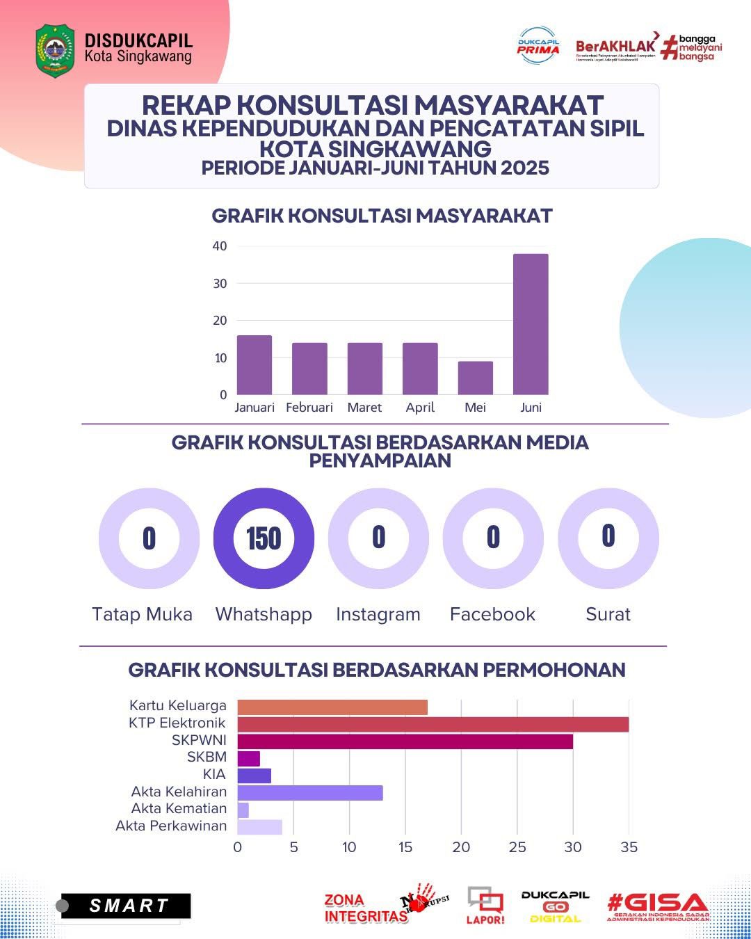 Rekap Pengaduan Dinas Kependudukan dan Pencatatan Sipil Kota Singkawang Periode Januari – Juni 2025